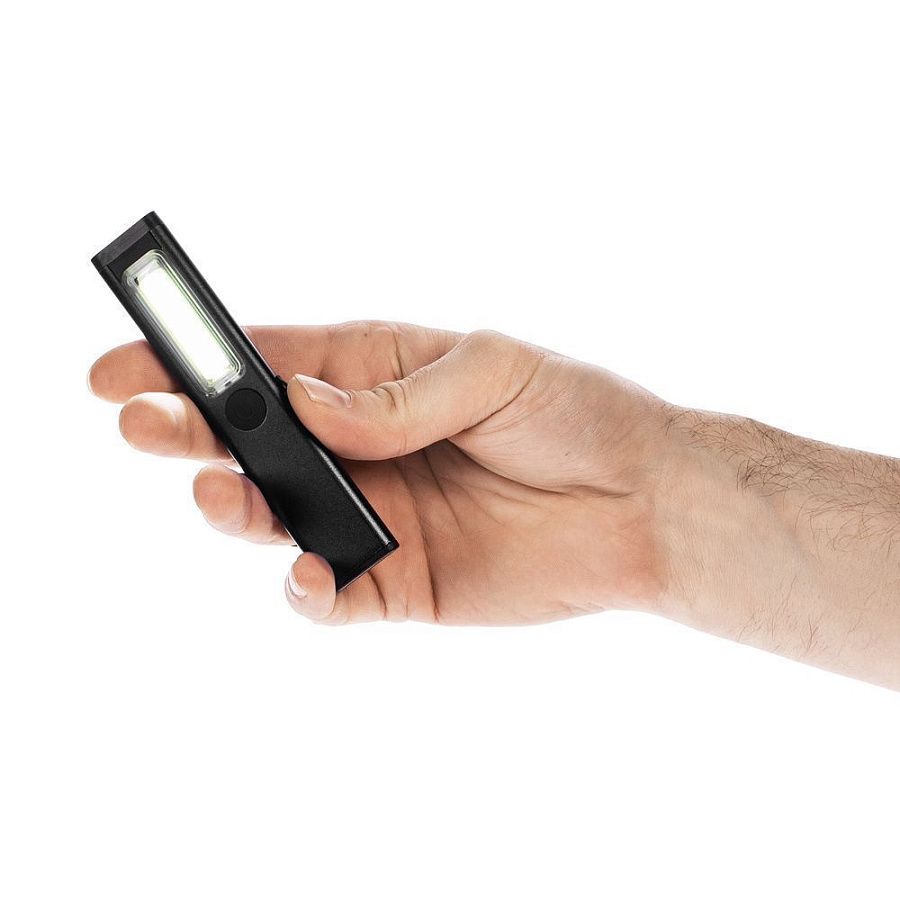 Плавная регулировка яркости осуществляется удержанием центральной кнопки при включенном устройстве — это позволяет точно адаптировать освещение под рабочие условия. Магнит в основании фонарика дает возможность зафиксировать фонарик на металлической поверхности и освободить руки для выполнения задач.
