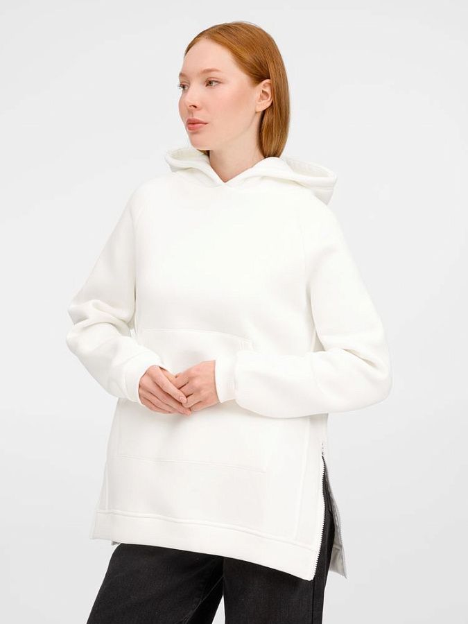 Худи унисекс удлиненного силуэта с молниями в боковых швах.
