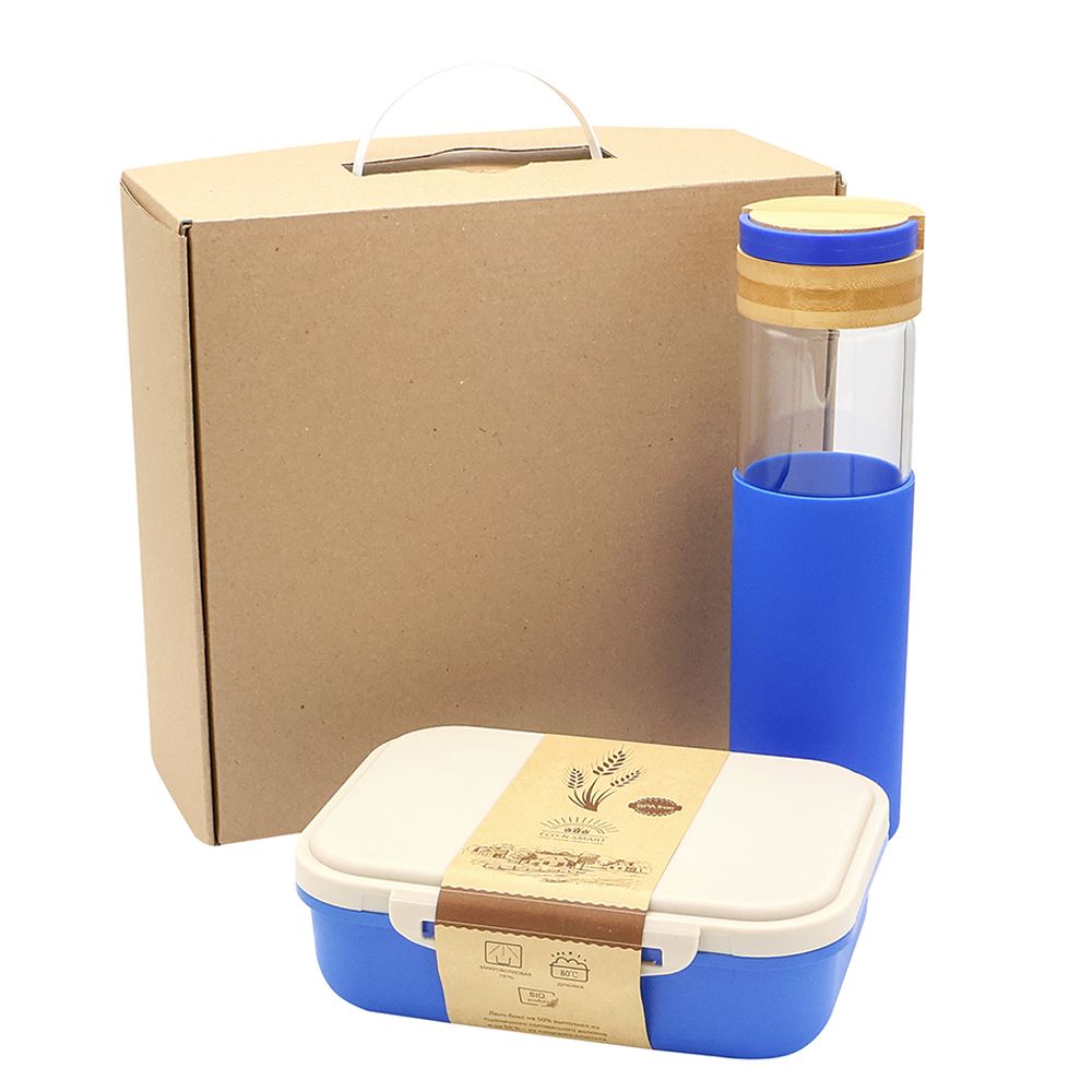 Бутылка стеклянная с силиконовой манжетой и бамбуковой крышкой Glass , синий - 1 шт. (Артикул: 14032.03)