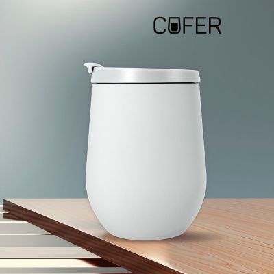Характерная обтекаемая форма с расширяющейся нижней частью придает коферу оригинальность. Благодаря этой форме, кофер можно использовать для любых напитков: вода, чай, кофе, вино, коктейли - наливайте в кофер все, что захотите, напиток надолго сохранит свою температуру и вкус.