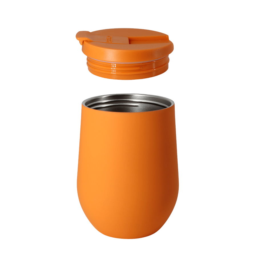Характерная обтекаемая форма с расширяющейся нижней частью придает коферу оригинальность. Благодаря этой форме, кофер можно использовать для любых напитков: вода, чай, кофе, вино, коктейли - наливайте в кофер все, что захотите, напиток надолго сохранит свою температуру и вкус.