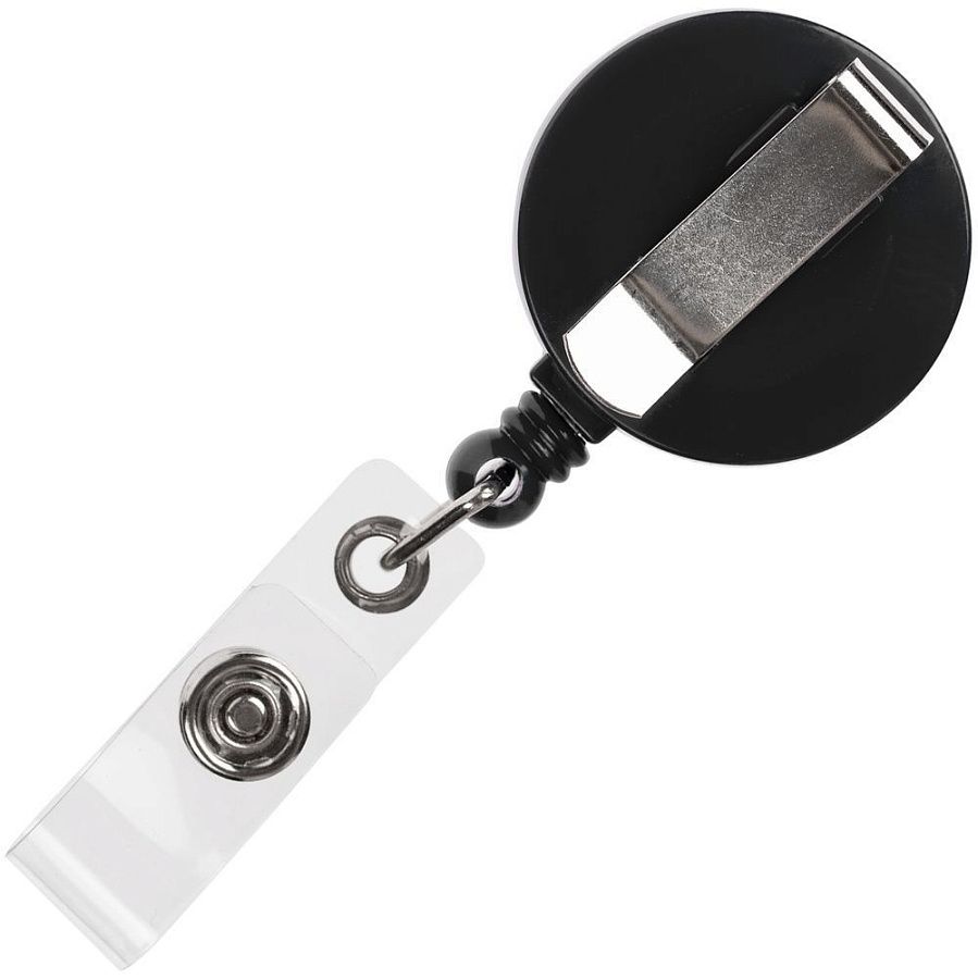 Ретрактор крепится к одежде, а с другой стороны можно поместить бейдж, визитку или магнитную карту. В корпусе спрятан сворачивающийся шнур, который позволяет при необходимости демонстрировать содержимое держателя, не снимая его.