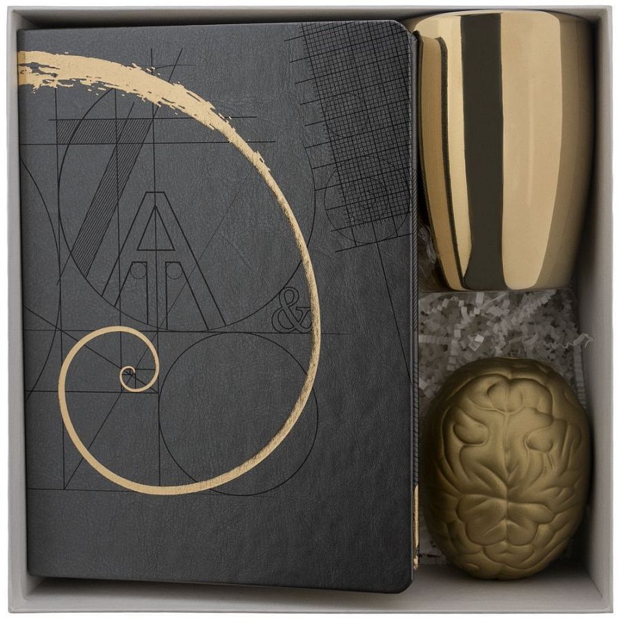 Позолоченный эффект в оформлении всех составляющих набора — выигрышный визуальный акцент-комплимент, подчеркивающий особую ценность получателя подарка.