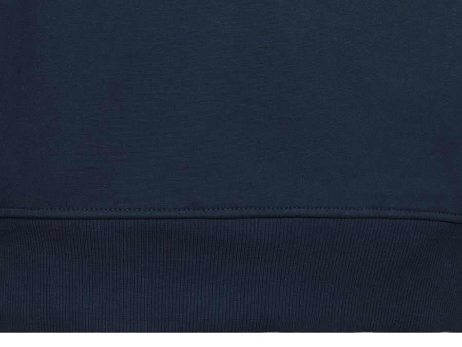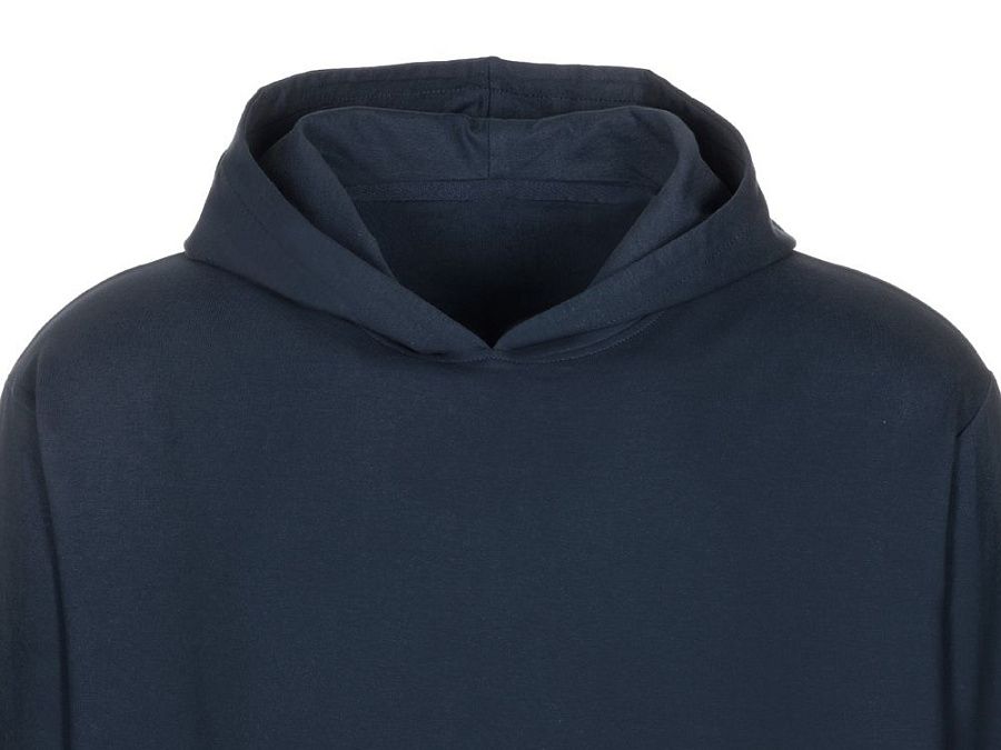 Чтобы худи дольше сохраняло форму, горловина усилена тесьмой со внутренней стороны спинки, а манжеты и низ отстрочены и отделаны рибом 2х2.