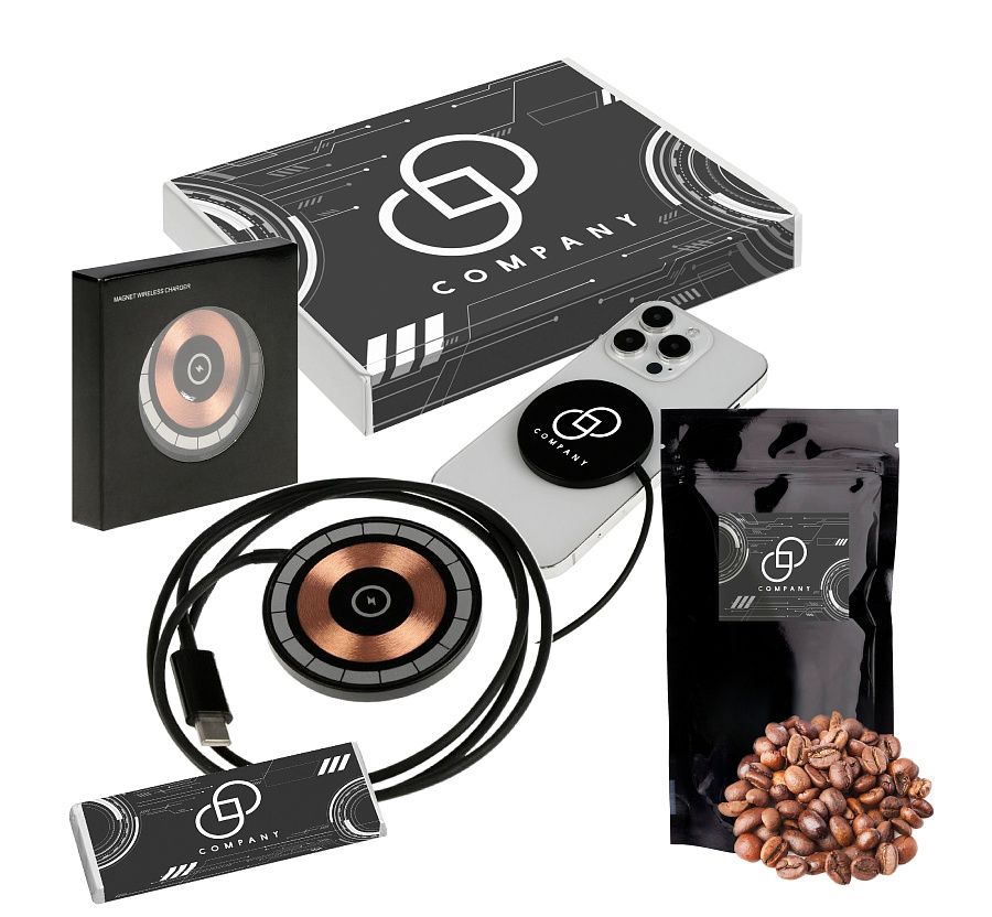 Подарочный набор «Притяжение»: беспроводная зарядка, кофе, шоколад, артикул 15050