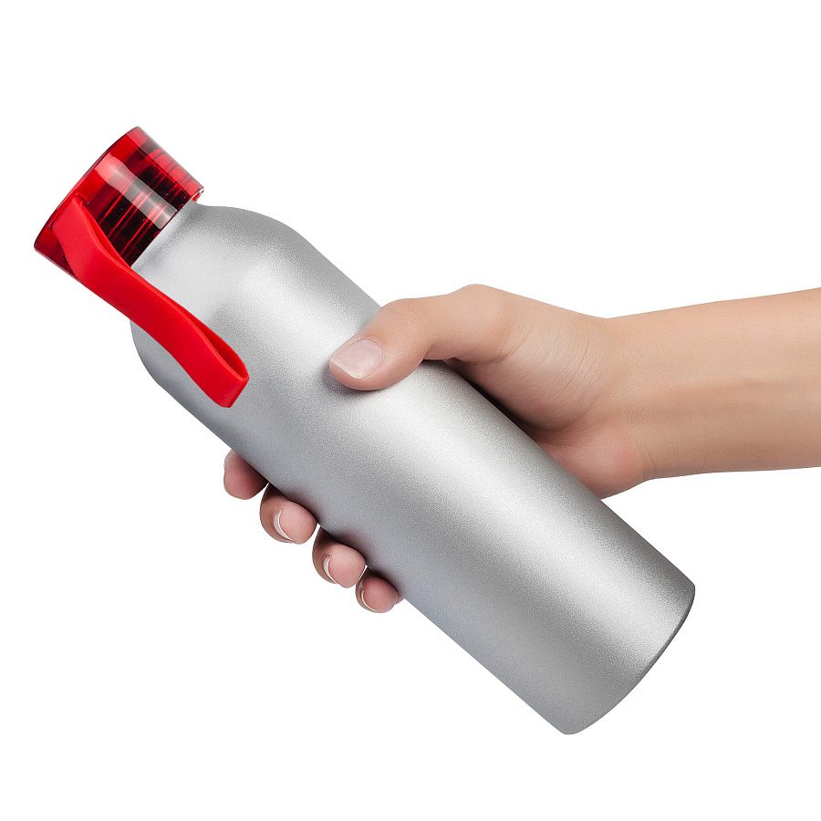 Алюминиевая матовая бутылка с пластиковой крышкой.
