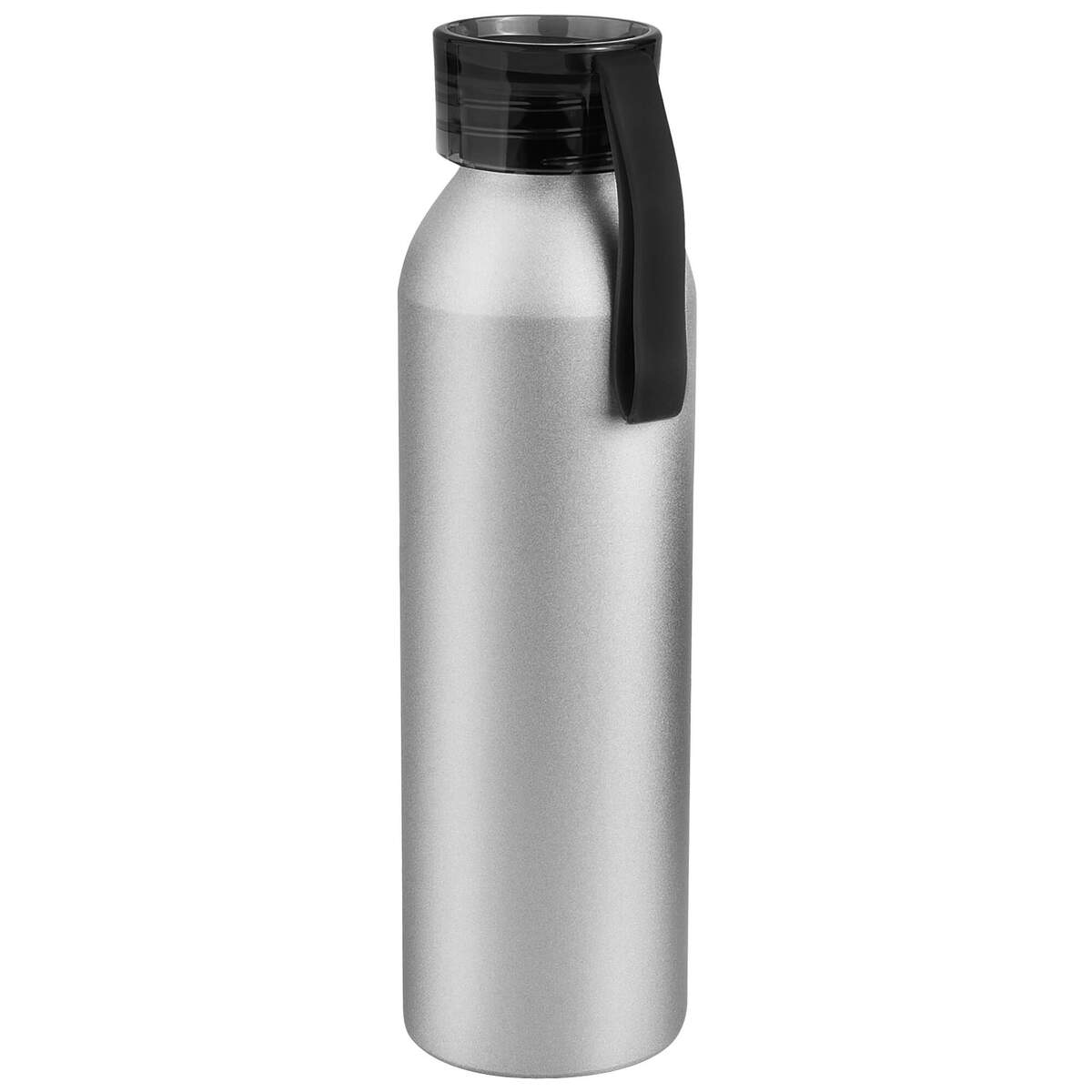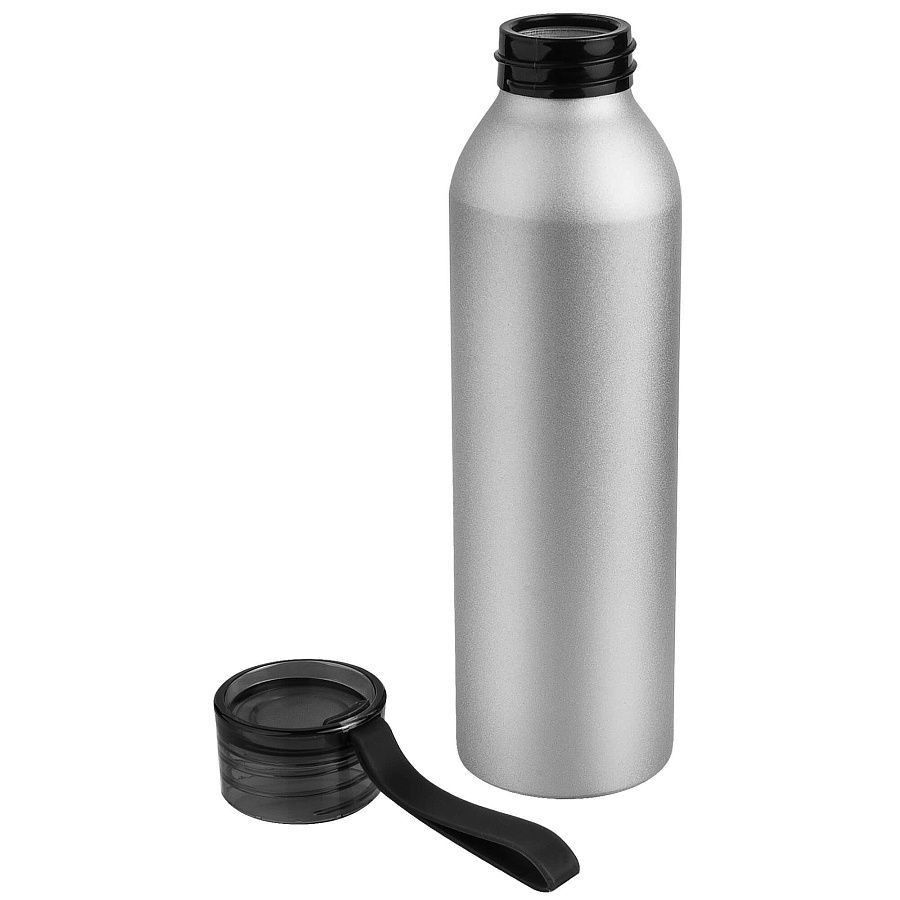 Алюминиевая матовая бутылка с пластиковой крышкой.