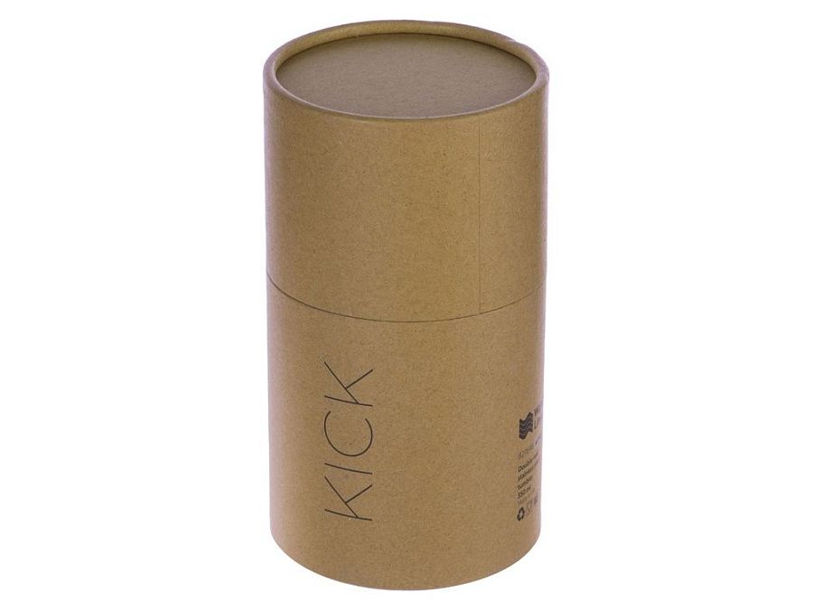 Термокружка «Kick» отлично подойдет для повседневного использования как на работе, так и дома. Термокружка надежно крепится к столу за счет присоски на дне, что исключает падения при случайном задевании. Чтобы воспользоваться кружкой, ее нужно поднять вертикально. Дополняет конструкцию герметичная крышка с клапаном. Внутренняя колба выполнена из пищевой нержавеющей стали 304 марки, снаружи — пластик с покрытием софт тач. Удерживает тепло около 3.5 часов.
