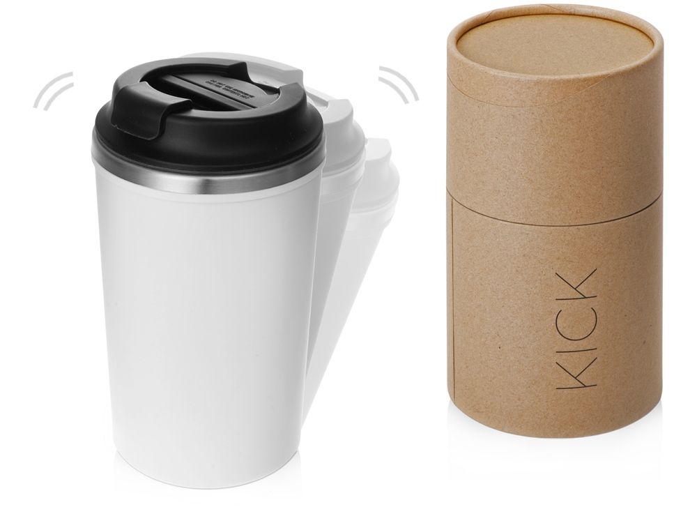 Термокружка «Kick» отлично подойдет для повседневного использования как на работе, так и дома. Термокружка надежно крепится к столу за счет присоски на дне, что исключает падения при случайном задевании. Чтобы воспользоваться кружкой, ее нужно поднять вертикально. Дополняет конструкцию герметичная крышка с клапаном. Внутренняя колба выполнена из пищевой нержавеющей стали 304 марки, снаружи — пластик с покрытием софт тач. Удерживает тепло около 3.5 часов.