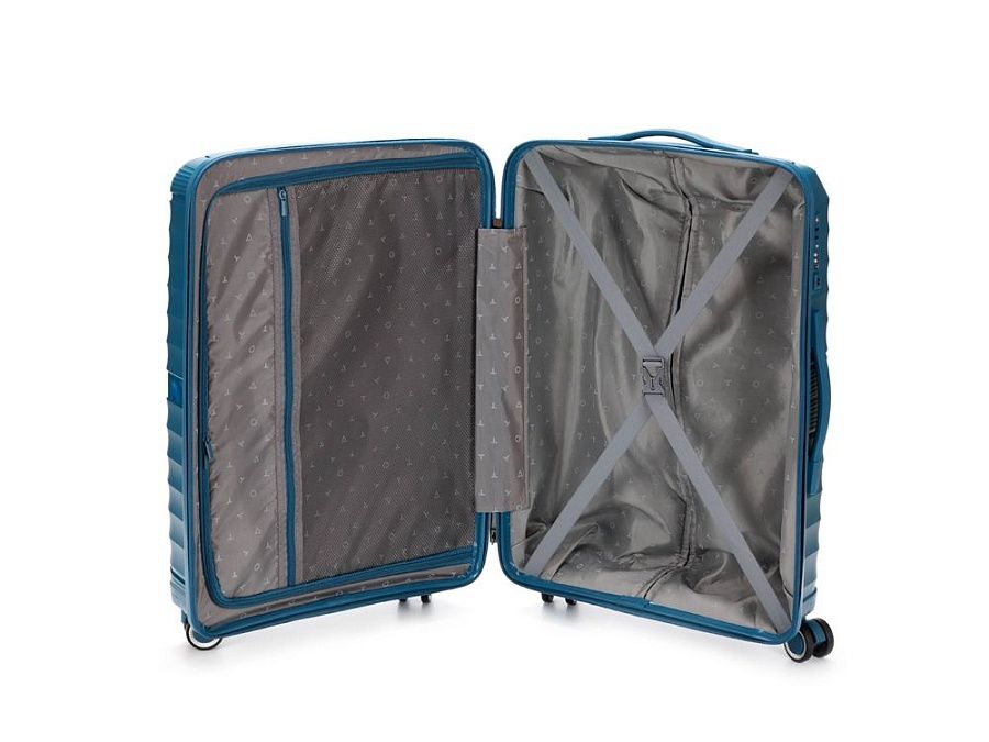 Чемодан полностью раскрывается на 2 вместительных отделения, с перегородкой на молнии и ремнями в форме Y для надежной фиксации вещей на месте.
