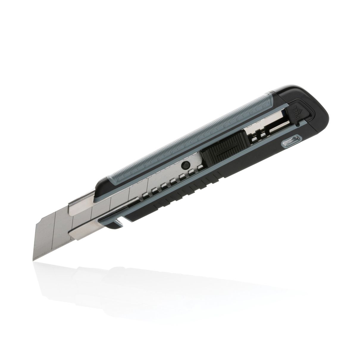 Бумага, ткань, картон, пластик, коробки и даже тонкий металл — строительный нож справится со всем! Острое лезвие из нержавеющей стали SK4 (18 мм) оставляет четкие и ровные срезы, а при необходимости его легко и просто заменить. Достаточно аккуратно отломить затупившийся кончик, и нож опять станет острым.