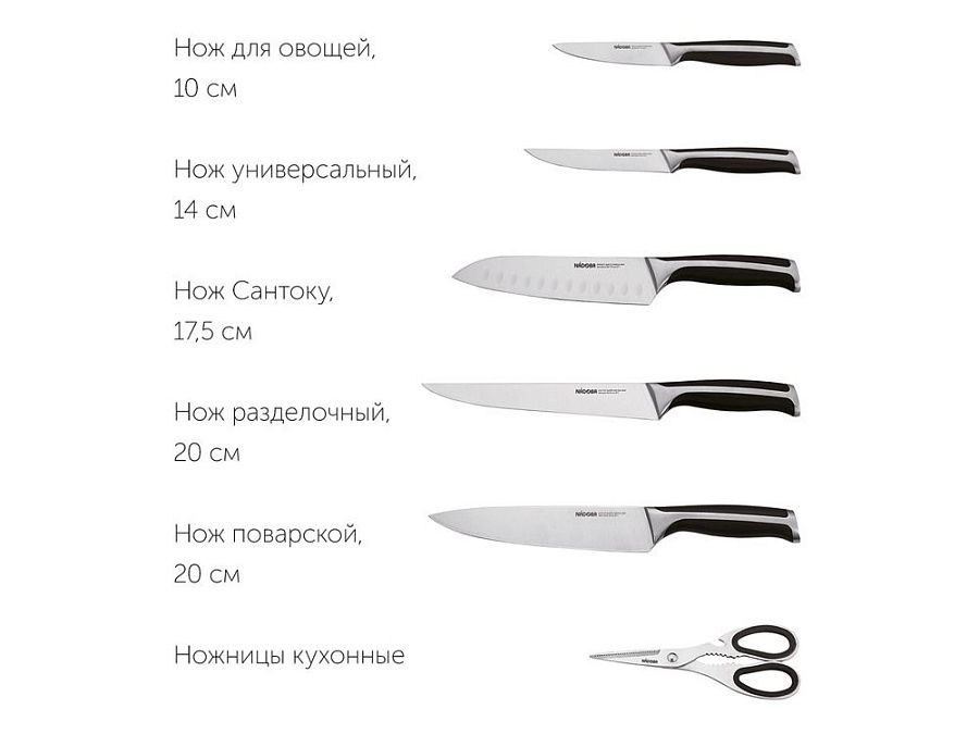 - Ручки ножей выполнены из кованной нержавеющей стали и прочного ABS-пластика.