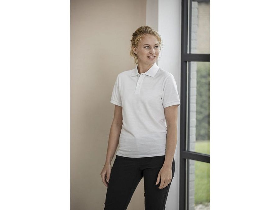 Данное поло обеспечивает комфорт и долговечность, дополненное манжетами в рубчик 1x1 на концах рукавов. Поло также имеет сертифицированные GRS пуговицы, что еще больше снижает воздействие на окружающую среду. Эта футболка-поло с боковыми разрезами для удобства движений отличается функциональностью. Изготовлена из трикотажа пике плотностью 200 г/м² из переработанного хлопка с добавлением переработанного полиэстера.