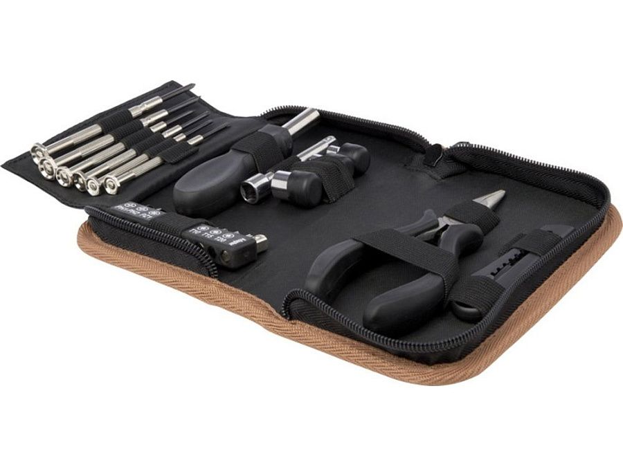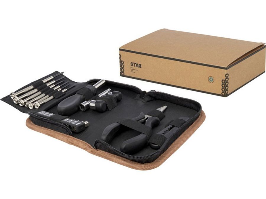 Набор инструментов Spike сочетает в себе практичность, долговечность и экологичность в одной красивой упаковке. Его чехол для хранения из пробкового дуба не только привлекателен визуально, но и экологически безопасен без ущерба для качества и производительности. Внутри чехла вы найдете набор из 24 основных инструментов, изготовленных из углеродистой стали и переработанной пластмассы, сертифицированной RCS: 1 нож для чистого реза и точной обрезки, 6 прецизионных отверток для деликатных работ, 10 бит отвертки, 1 ручка отвертки с удобной рукояткой, 1 удлинитель для труднодоступных мест, 4 насадки для различных работ и 1 длинноносые плоскогубцы для захвата и изгиба. Поскольку пробковый дуб является природным материалом, цвет и размер изделия могут слегка различаться, что, в свою очередь, может повлиять на итоговый вид печати. Упаковано в подарочную коробку STAC из экологически чистых источников. Carbon steel, Recycled PP Plastic.