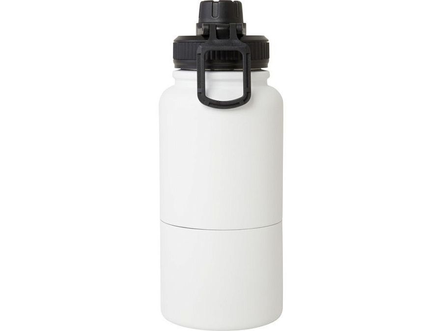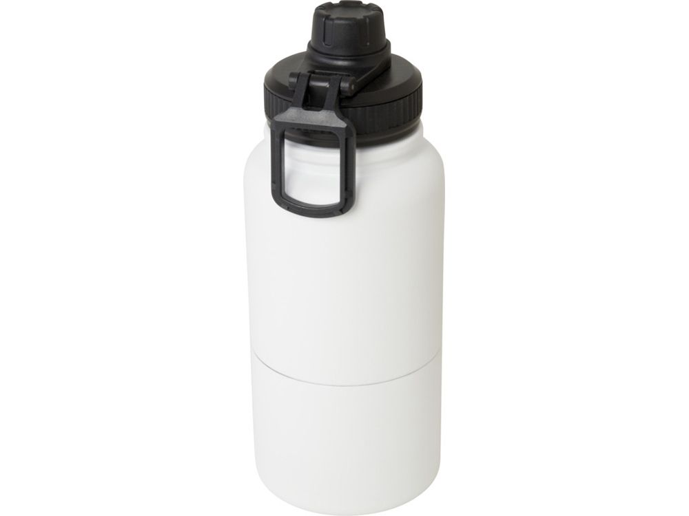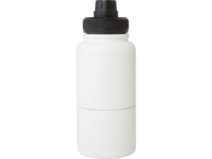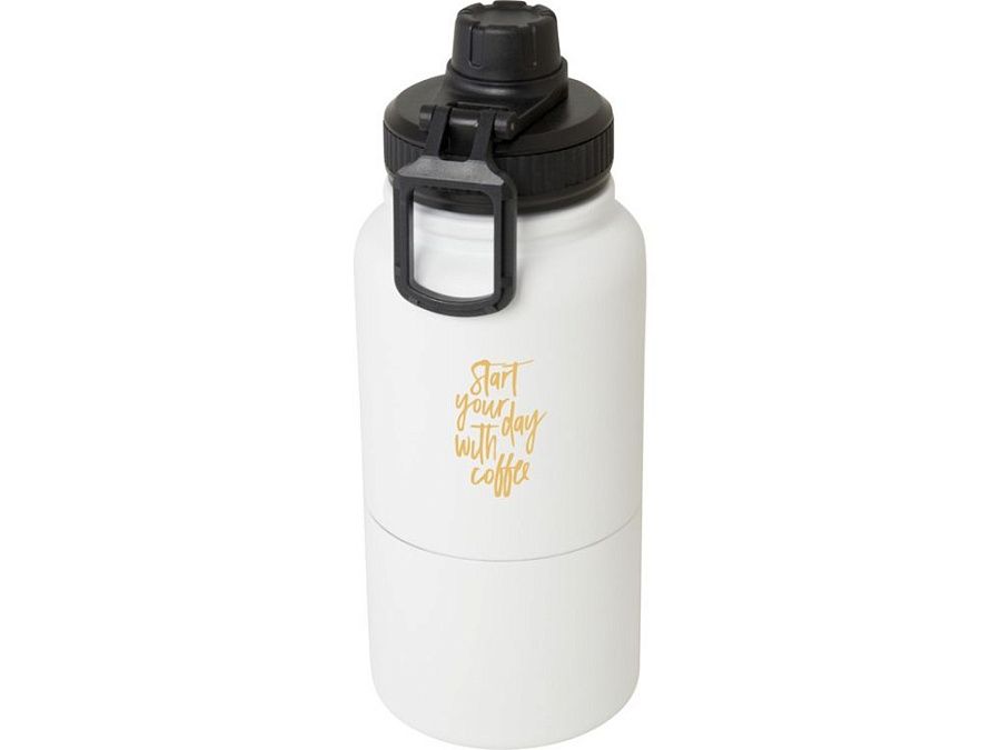 Многоразовая бутылка-термос из нержавеющей стали, сертифицированная RCS, со съемным контейнером для хранения. В верхней части бутылка имеет медный изолированный термос объемом 530 мл, который сохраняет напитки горячими или холодными в течение нескольких часов. Нижняя часть представляет собой контейнер с двойными стенками, вмещающий до 340 мл. Его можно использовать как чашку для любимых холодных напитков или для хранения закусок или других мелочей. Поставляется в подарочной коробке из переработанного картона. RCS certified recycled stainless steel, Recycled PP Plastic. Packaging: FSC Mix Credit P5.1 CU-COC-877277.