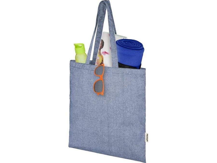 Эко-сумка из смеси переработанного хлопка и полиэстера плотностью 150 г/м². Эта сумка легко складывается, чтобы поместиться в небольшом пространстве, и является идеальным компаньоном для различных занятий, таких как покупка продуктов, однодневные поездки или поделки. Вторичный хлопок изготавливается из отходов, предназначенных для потребления, которые производятся текстильными фабриками в процессе резки. Подобные цвета смешиваются вместе, поэтому дополнительная окраска не требуется. Из-за особенностей переработанного хлопка возможны незначительные отклонения в цвете. Благодаря этому изделие выглядит более аутентичным. Каждая сумка также поставляется с индикатором Aware™. Эта инновационная функция позволяет пользователям отслеживать происхождение и путь своего товара с помощью QR-кода, повышая прозрачность цепочки поставок и способствуя более прочной связи между продуктом и процессом его производства. Прочность до 5 кг. Длина ручки: 31 см. 80% Recycled cotton, 20% Переработанный Полиэстер.