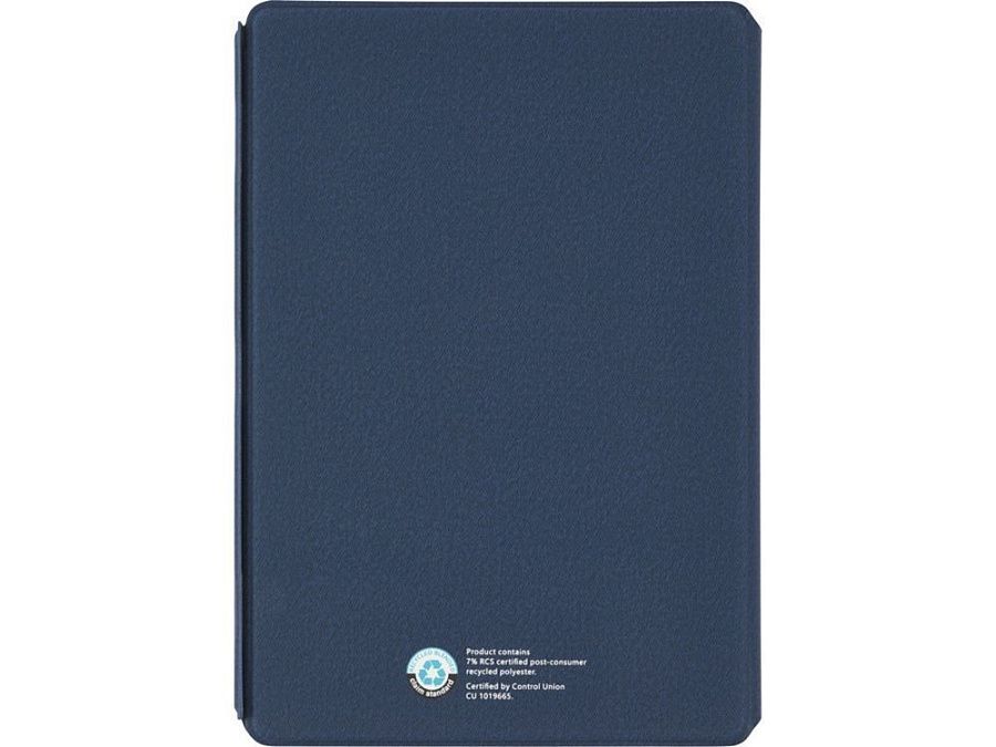 Папка-органайзер Notu, сертифицированная RCS, частично изготовлена из переработанного полиэстера, бывшего в употреблении, что делает данную папку-органайзер более экологичным выбором, поскольку помогает сократить использование первичного сырья. Имеет магнитную застежку, карман-гармошку и 64 листа в линейку кремового цвета из переработанной бумаги плотностью 80 г/м² из экологически чистых источников. FSC certified paper. FSC Mix Credit P7 CU-COC-877277.