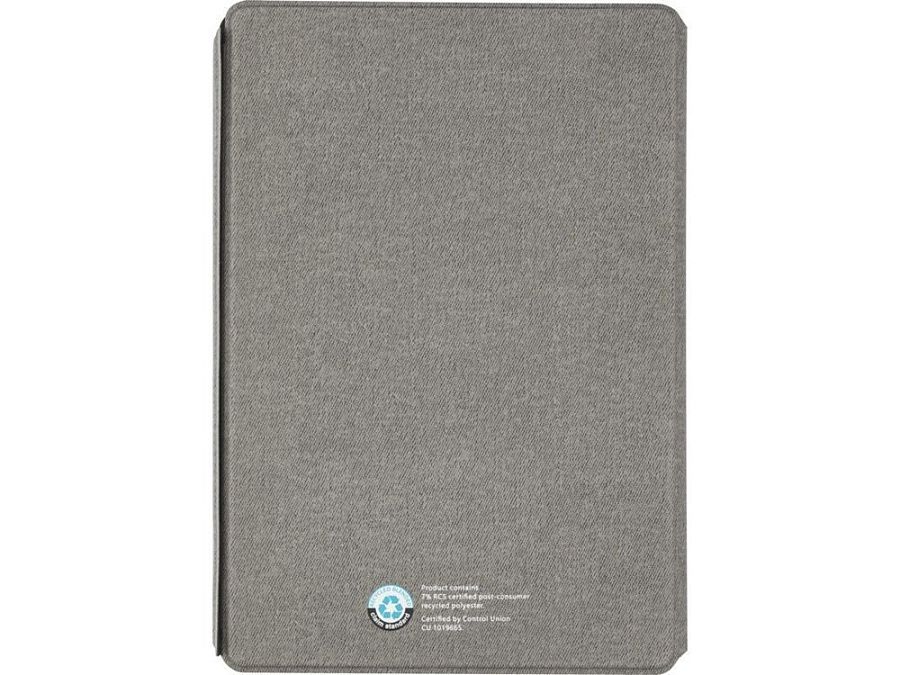 Папка-органайзер Notu, сертифицированная RCS, частично изготовлена из переработанного полиэстера, бывшего в употреблении, что делает данную папку-органайзер более экологичным выбором, поскольку помогает сократить использование первичного сырья. Имеет магнитную застежку, карман-гармошку и 64 листа в линейку кремового цвета из переработанной бумаги плотностью 80 г/м² из экологически чистых источников. FSC certified paper. FSC Mix Credit P7 CU-COC-877277.