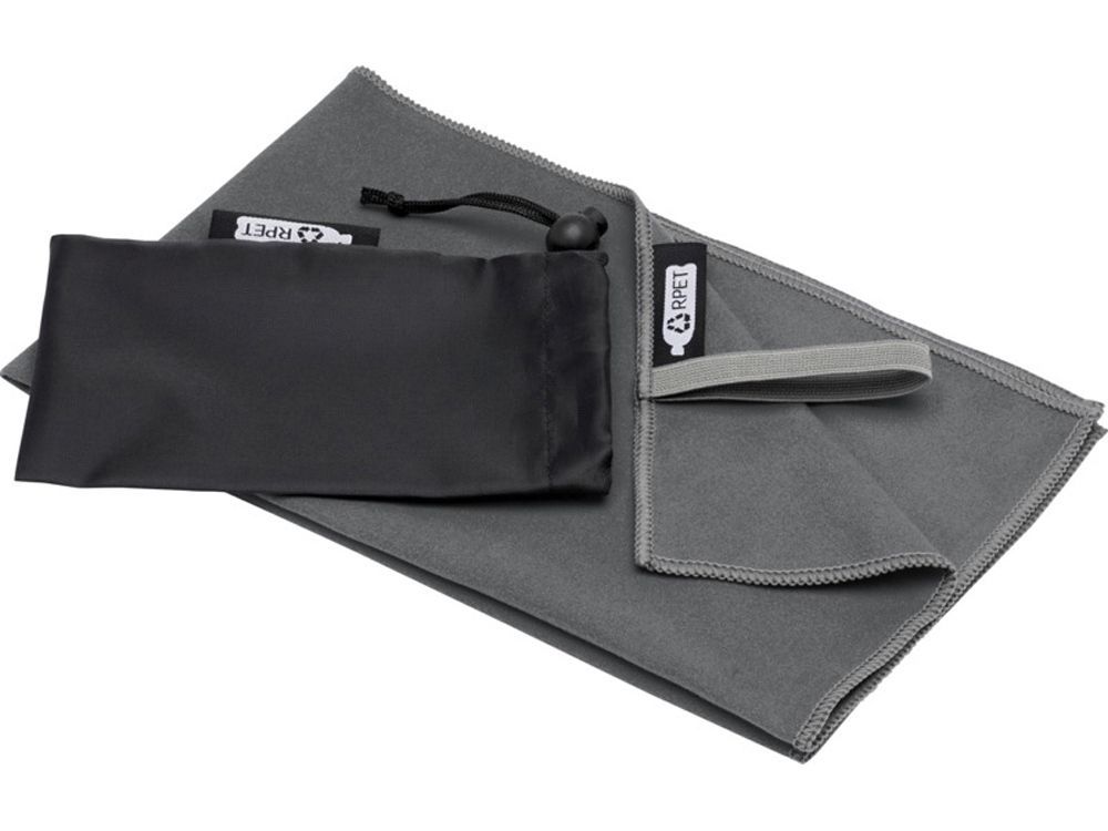 Спортивное полотенце Pieter очень хорошо впитывает влагу, легкое, быстро сохнет, а ткань прочная и очень мягкая. Когда полотенце сложено и закреплено резинкой, оно уменьшается до небольшого размера, поэтому его удобно брать с собой в тренажерный зал, бассейн, на пешую прогулку или в поход. Полотенце размером 50 х 30 см изготовлено из 90 % переработанного полиэстера GRS и 10 % нейлона. Его можно стирать в стиральной машине при температуре 40 °C. В комплект поставки входит мешок для хранения (15,5 x 10 см), изготовленный из переработанного ПЭТ-пластика, обеспечивающий большую площадь для печати логотипа. 10% Нейлон, 90% GRS certified recycled polyester, 200 g/m2.