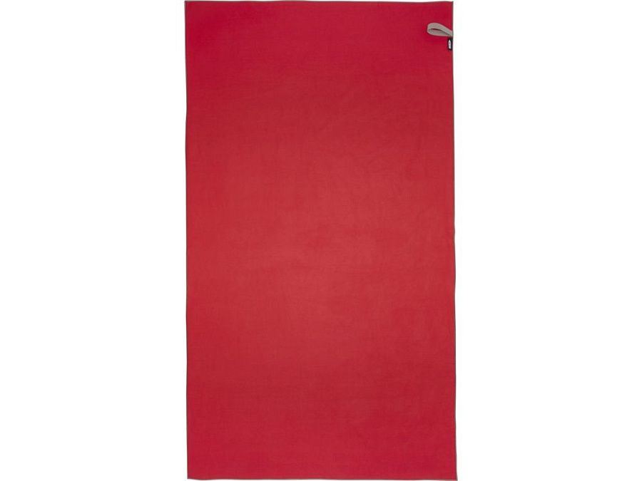 Спортивное полотенце Pieter очень хорошо впитывает влагу, легкое, быстро сохнет, а ткань прочная и очень мягкая. Когда полотенце сложено и закреплено резинкой, оно уменьшается до небольшого размера, поэтому его удобно брать с собой в тренажерный зал, бассейн, на пешую прогулку или в поход. Полотенце размером 50 х 30 см изготовлено из 90 % переработанного полиэстера GRS и 10 % нейлона. Его можно стирать в стиральной машине при температуре 40 °C. В комплект поставки входит мешок для хранения (15,5 x 10 см), изготовленный из переработанного ПЭТ-пластика, обеспечивающий большую площадь для печати логотипа. 10% Нейлон, 90% GRS certified recycled polyester, 200 g/m2.