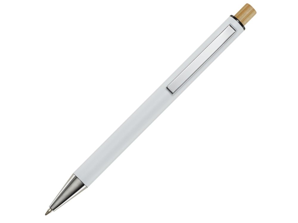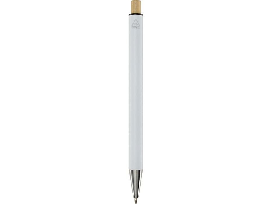 Шариковая ручка Cyrus изготовлена из переработанного алюминия, что требует меньше энергии, чем производство алюминия из сырья. Это также уменьшает количество отходов на свалках и помогает сохранять природные ресурсы для сокращения выбросов парниковых газов. Нажимная кнопка изготовлена из бамбука. Цвет чернил: синий. Длина непрерывной линии: 800 метров. Размер пера: 1,00 мм. Recycled Aluminium.