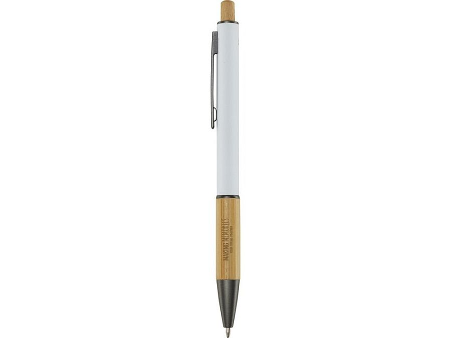 Шариковая ручка Darius изготовлена из переработанного алюминия, что требует меньше энергии, чем производство алюминия из сырья. Это также уменьшает количество отходов на свалках и помогает сохранять природные ресурсы для сокращения выбросов парниковых газов. Нажимная кнопка и нижняя часть корпуса изготовлены из бамбука. Цвет чернил: синий. Длина непрерывной линии: 800 метров. Размер пера: 1,00 мм. Recycled Aluminium.