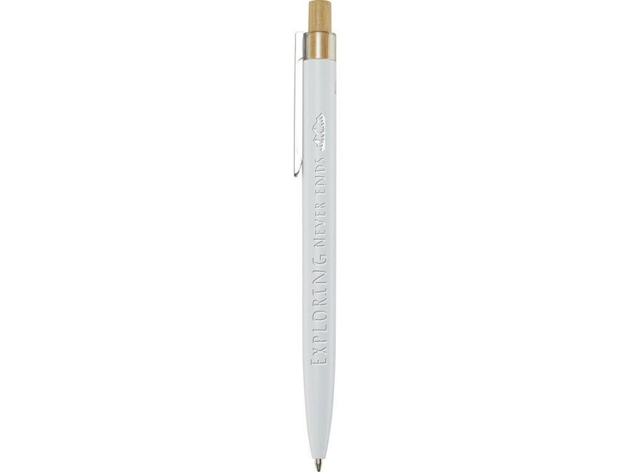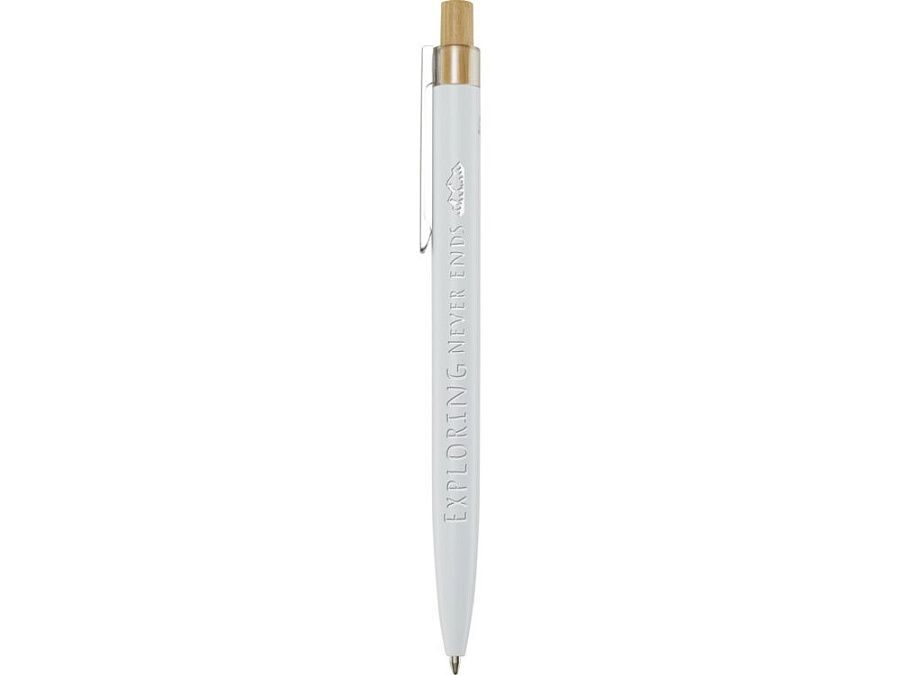 Шариковая ручка Nooshin изготовлена из переработанного алюминия, что требует меньше энергии, чем производство алюминия из сырья. Это также уменьшает количество отходов на свалках и помогает сохранять природные ресурсы для сокращения выбросов парниковых газов. Нажимная кнопка изготовлена из бамбука. Цвет чернил: синий. Длина непрерывной линии: 800 метров. Размер пера: 1,00 мм. Recycled Aluminium.
