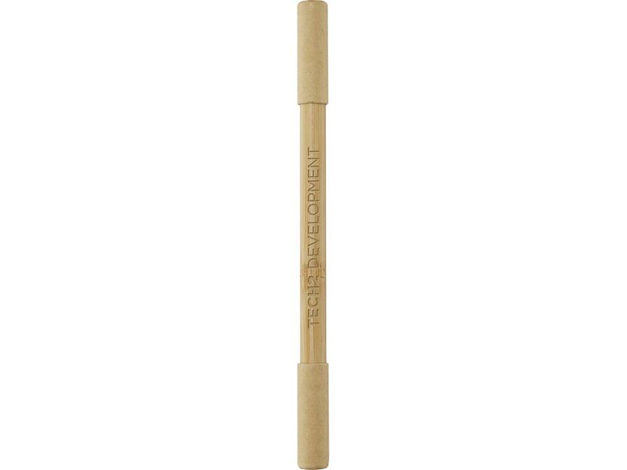 Бамбуковая двойная ручка Samambu имеет две головки: 1 шариковая ручка и 1 бесчернильная ручка. Сторона без чернил не требует чернильных картриджей или заправки. Черный графитовый наконечник ручки предназначен для того, чтобы оставлять видимые следы при контакте с поверхностью для записи. Выбирая ручку, изготовленную из бамбука, вы приобретаете более экологичный продукт и способствуете использованию возобновляемых материалов. Шариковая ручка имеет синие чернила, размер пера 1,00 мм и длину непрерывной линии 600 метров. Длина непрерывной линии бесчернильной ручки: 1500 метров. FSC certified bamboo. FSC 100% N5 CU-COC-877277.