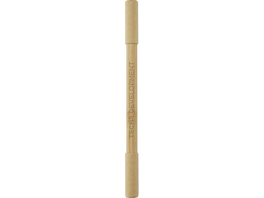 Бамбуковая двойная ручка Samambu имеет две головки: 1 шариковая ручка и 1 бесчернильная ручка. Сторона без чернил не требует чернильных картриджей или заправки. Черный графитовый наконечник ручки предназначен для того, чтобы оставлять видимые следы при контакте с поверхностью для записи. Выбирая ручку, изготовленную из бамбука, вы приобретаете более экологичный продукт и способствуете использованию возобновляемых материалов. Шариковая ручка имеет синие чернила, размер пера 1,00 мм и длину непрерывной линии 600 метров. Длина непрерывной линии бесчернильной ручки: 1500 метров. FSC certified bamboo. FSC 100% N5 CU-COC-877277.