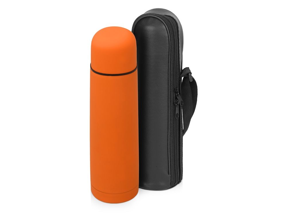 Универсальный термос с мягким прорезиненным покрытием софт-тач. Удобно и приятно держать в руке. Благодаря вакуумной изоляции и двойным стенкам сохраняет напитки горячими 24 часа. Герметичный клапан открывается и закрывается по легкому нажатию. Термос поставляется в дорожном чехле из искусственной кожи.
