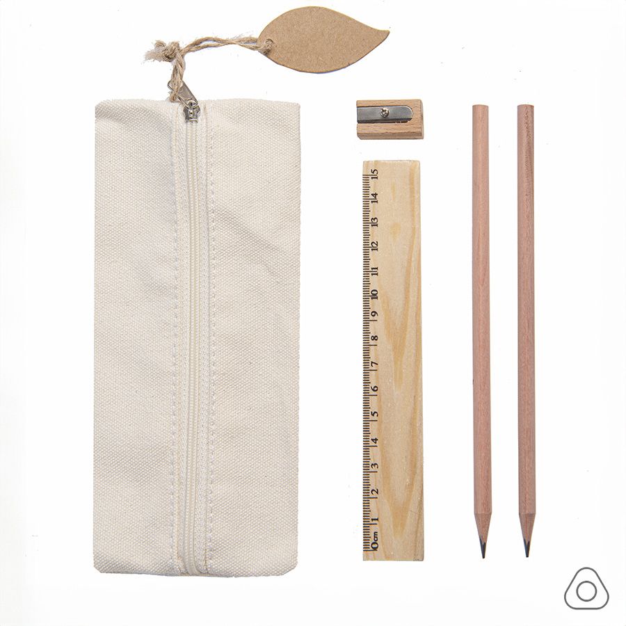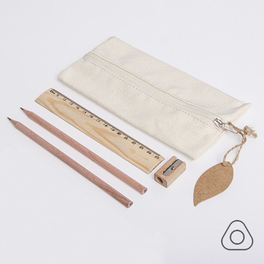 Удобный и функциональный пенал, в который входят 2 чернографитных карандаша HB с грифелем 2,0 мм, деревянная линейка 15 см и точилка из дерева со стальным лезвием. Эко пенал украшает листочек из крафтового картона, коттрый так же подходит для персонализации.