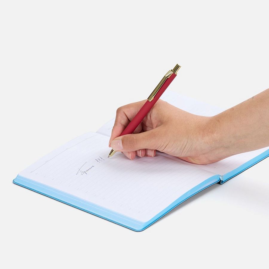Шариковая ручка с покрытием софт-тач и золотистыми деталями. Клип оригинальной формы.
