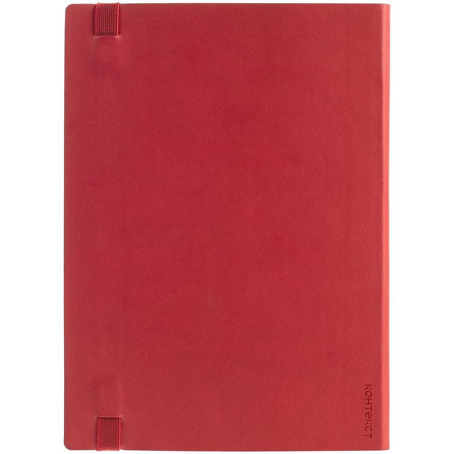 Ежедневник с гибкой обложкой выполнен из материала Latte, красный РР, и дополнен резинкой шириной 1 см, капталом и ляссе красного цвета.
