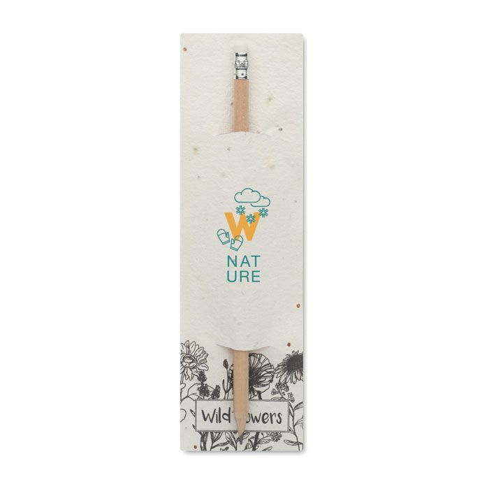 Карандаш из натурального дерева с ластиком. Поставляется в бумажном конверте с семенами (полевые цветы).
