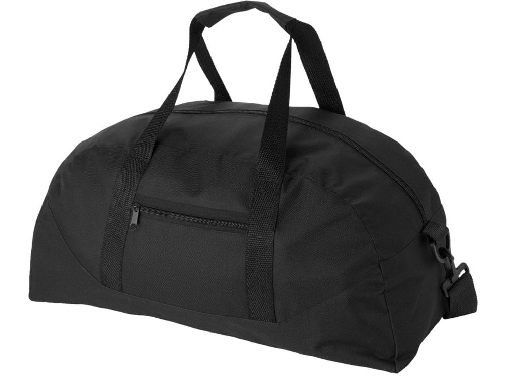 Основное и переднее отделение на молниях. Две усиленные ручки. Регулируемый плечевой ремень, максимальная длина 110 см.