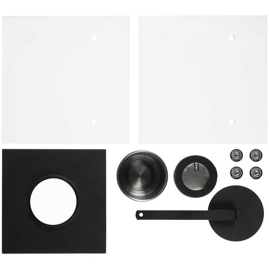 основание - сталь, порошковое покрытие; стенки - стекло, закаленное; чаши для топлива - нержавеющая сталь; гаситель - нержавеющая сталь, порошковое покрытие