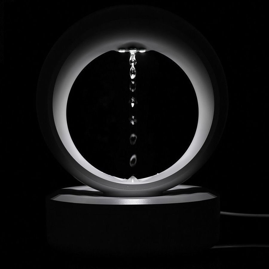Благодаря специальной подсветке можно часами завороженно наблюдать, как капли воды, будто преодолевая гравитацию, поднимаются вверх и замирают в воздухе, или движутся вниз — ощутимо медленнее, чем это предписывается законом всемирного тяготения.