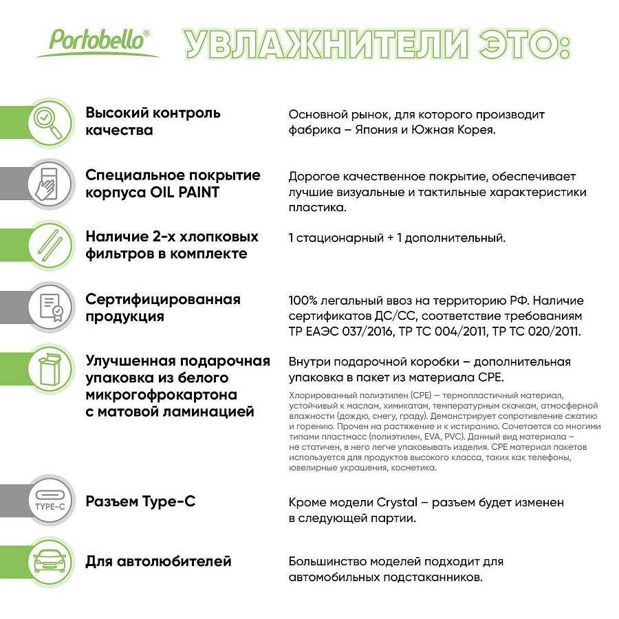 Мини-увлажнитель воздуха с соляными кристаллами и функцией радужной LED-подсветки Технология нано-распыления эффективно снижает сухость и статическое электричество в воздухе. Кристаллы гималайской соли при нагревании LED-подсветкой ионизируют и очищают воздух. Устройство можно использовать как аромадиффузор, добавив на поверхность кристаллов пару капель эфирного масла. Специальное покрытие корпуса OIL PAINT обеспечивает лучшие визуальные и тактильные характеристики пластика. Подходит для использования в помещении и в автомобиле. Объем резервуара воды – 250 мл.
