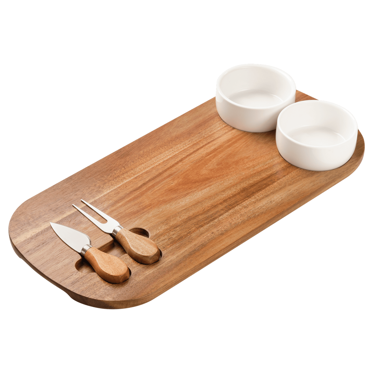 Набор предназначен для сервировки сыров и других закусок, а керамические соусницы идеально подойдут для меда, варенья или орехов.