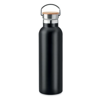 Термос с вакуумной колбой из нержавеющей стали с двойными стенками, бамбуковой крышкой и ручкой для переноски. Объем: 750 мл. Герметична.