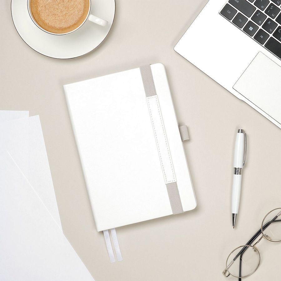 Недатированный ежедневник в жесткой обложке из качественной искусственной кожи. Материал обложки гладкий, текстурированный, с полуглянцевым блеском. Скругленные углы обложки и внутреннего блока. Отличительная особенность коллекции — голографический фольгированный срез блока. Форзац/нахзац– серые. Вариант в жесткой обложке украшен широкой вертикальной резинкой-фиксатором с вставкой из ПУ-материала обложки и петелькой под ручку, а также двойным ляссе (серым и в тон обложки).