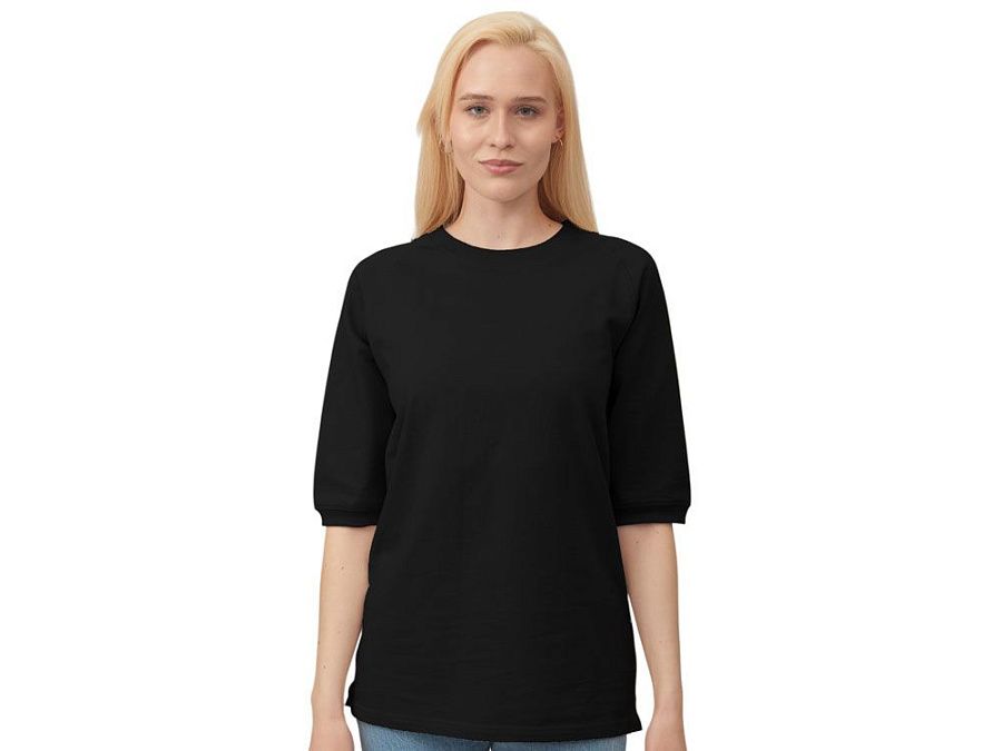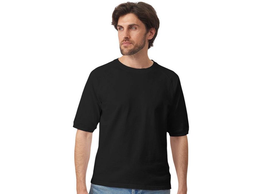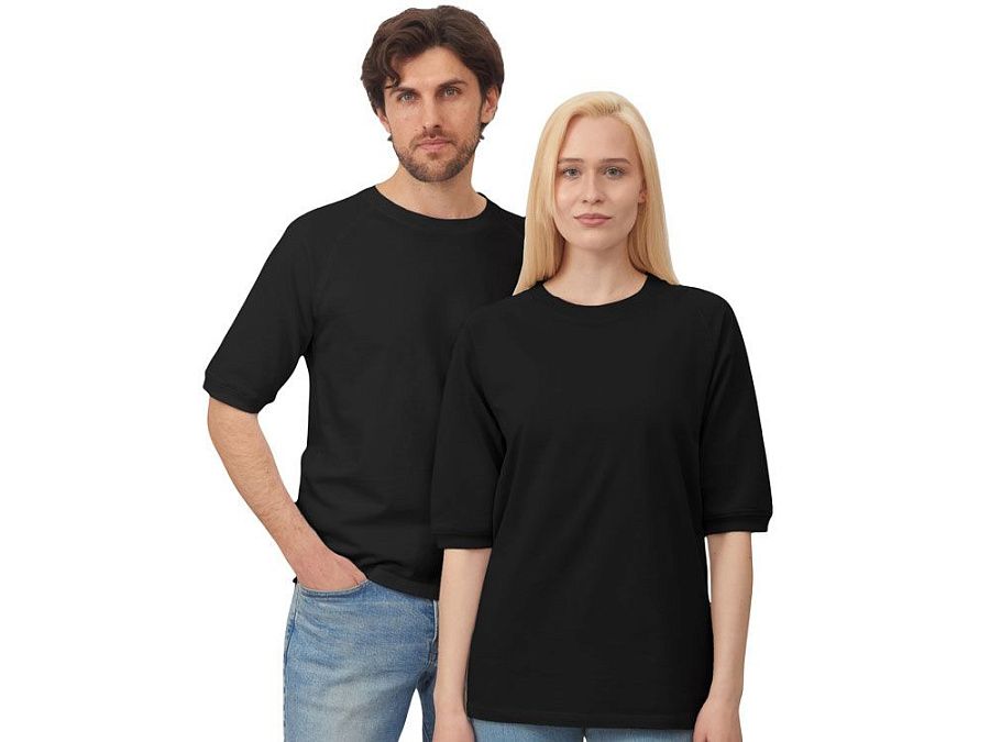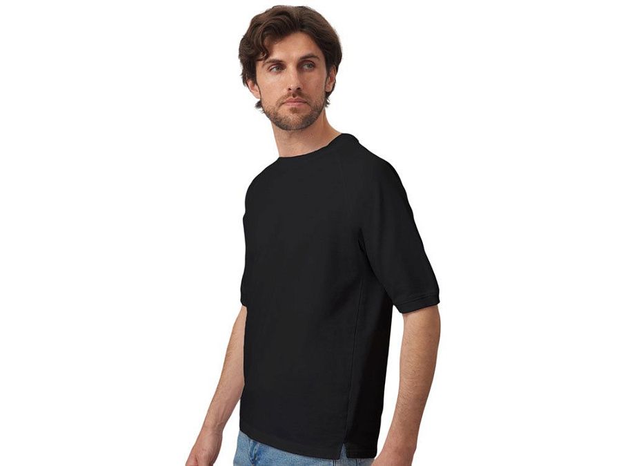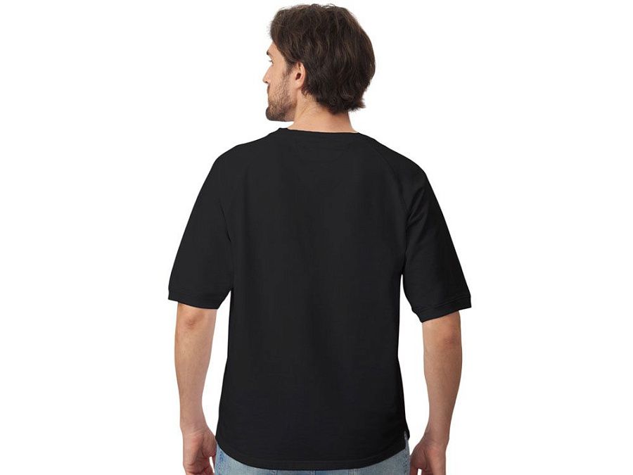 Футболка выполнена из хлопкового френч терри с петельками на изнаночной стороне. Горловина обработана рибом 2х2 и дополнительно усилена тесьмой-елочкой с внутренней стороны спинки и дополнена кокеткой по спинке для нанесения логотипа клиента. Рукав реглан продублирован рибом по низу. Разрезы в боковых швах. Гладкая поверхность полотна позволяет идеально нанести изображение. Футболка комфортного силуэта.