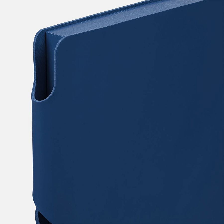 Гибкая обложка выполнена из материала Soft Touch Ultra, синий НН и Latte, синий НН (внутренняя часть обложки). Внутри корешка — специальное место для крепления ручки размером до 15х1 см.