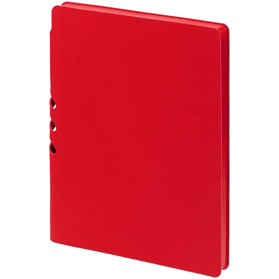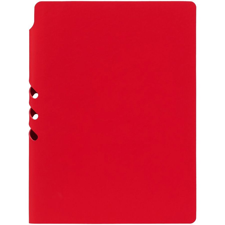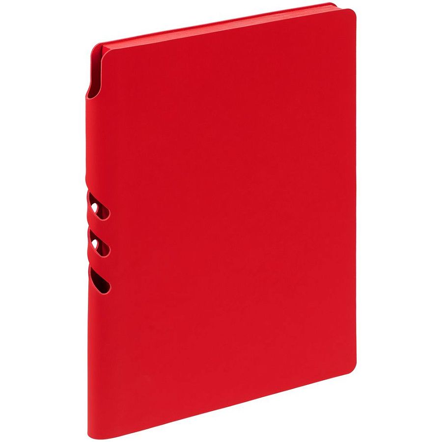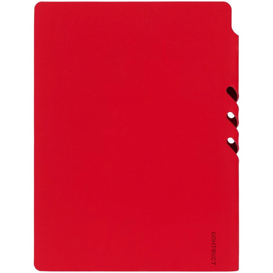 Гибкая обложка выполнена из материала Soft Touch Ultra, красный РР и Latte, красный РР (внутренняя часть обложки). Внутри корешка — специальное место для крепления ручки размером до 15х1 см.