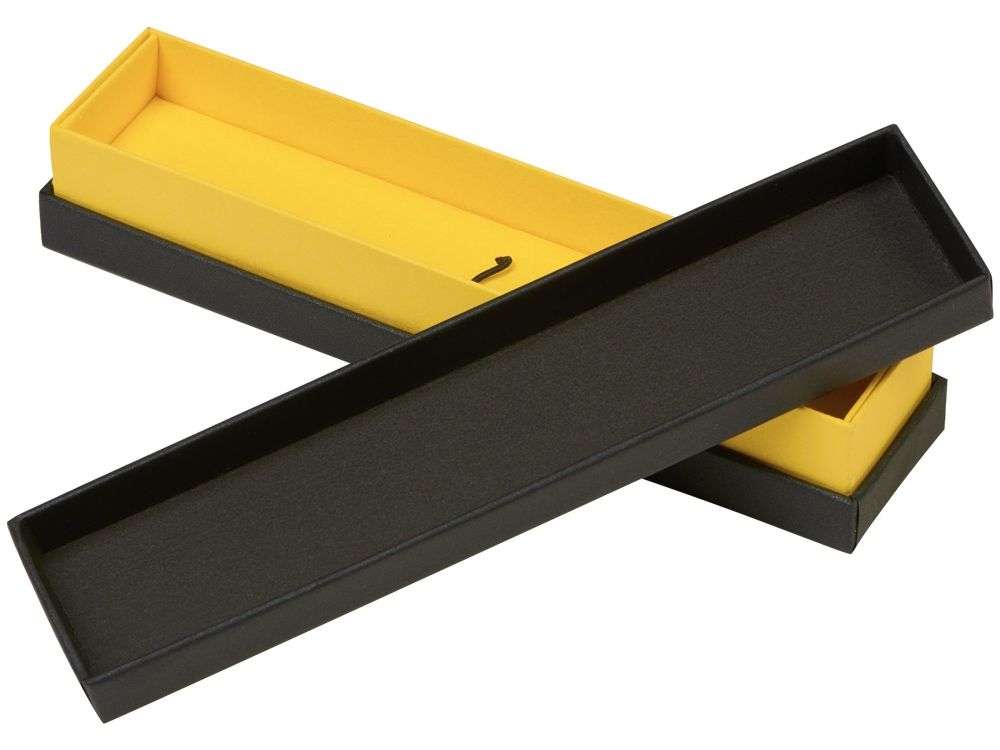 Футляр для одной ручки позволит красиво преподнести пишущий инструмент, достойным образом обрамив ее. В закрытом виде выглядит как черный футляр с контрастной цветной полосой, которую можно очень удачно сочетать с цветом самой ручки.