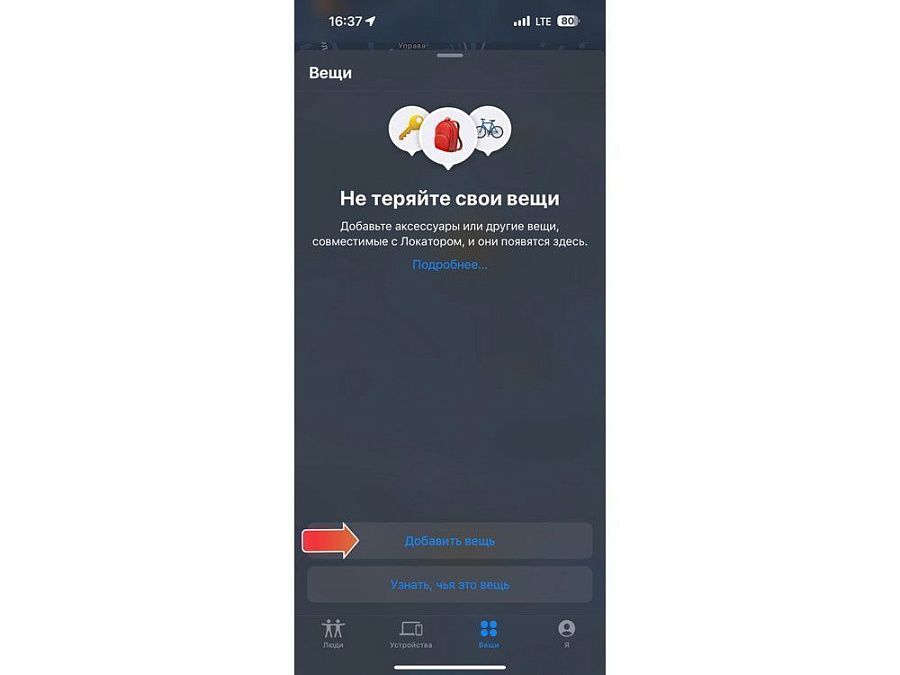 1. Зайти в «Локатор» и найти метку во вкладке «Вещи».