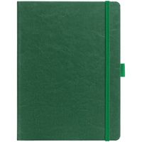 Еженедельник в твердой обложке выполнен из материала Nebraska, зеленый FF, дополнен резинкой, петлей для ручки и ляссе зеленого цвета.