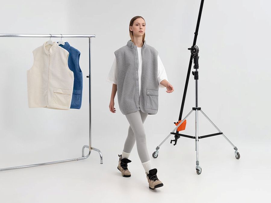 Жилет на молнии из современного двухслойного материала — модный искусственный мех снаружи и уютный флис внутри. Накладной карман из гладкого нейлона создает заметный визуальный контраст и делает жилет Oblako по-настоящему стильным предметом гардероба.