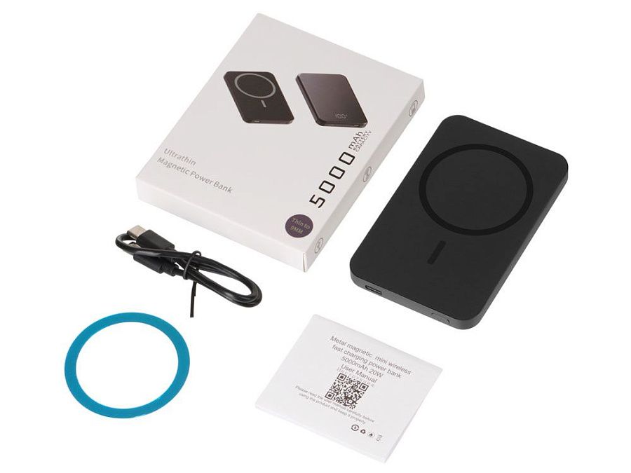 внешний аккумулятор, зарядный кабель type-c, металлическое кольцо, инструкция
