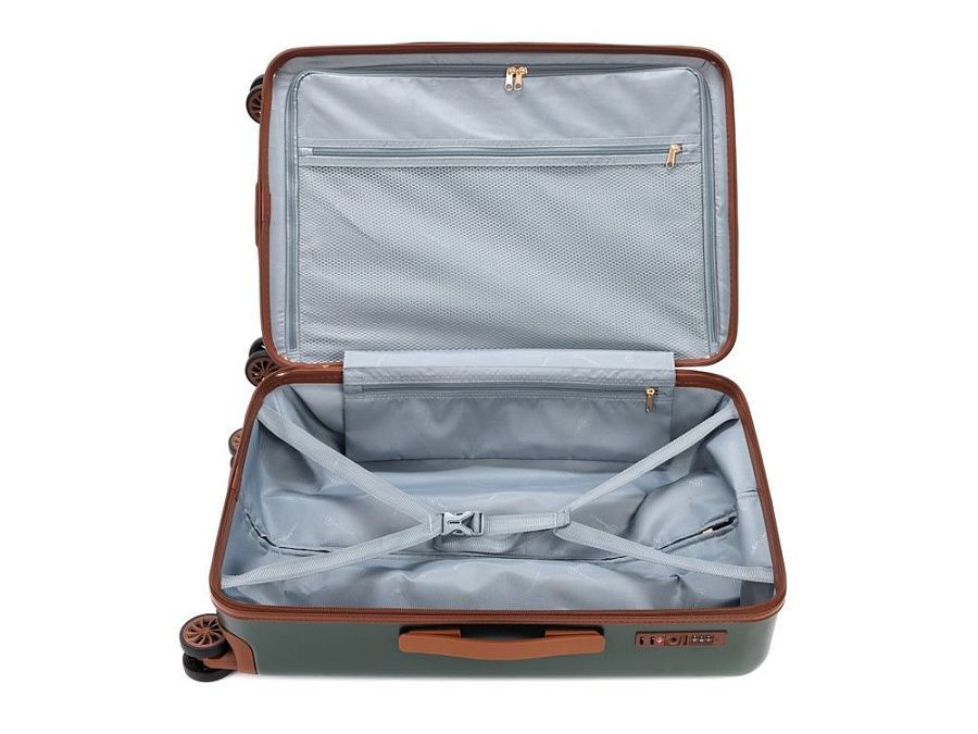 AMELIA воплощает собой неповторимый образ, сочетающий эстетику ретро с современной функциональностью. Вся товарная линейка представлена в великолепных темно-изумрудном и кремовом оттенках. Контрастные детали насыщенного коричневого цвета, бронзовые ручки и фурнитура идеально дополняют дизайн, подчеркивают индивидуальность и выразительность каждой модели. Изготовленные из высококачественного АБС-пластика и поликарбоната, чемоданы AMELIA обладают удивительной прочностью и легкостью. Четыре резиновых колеса с бесшумным ходом и возможностью поворота на 360° обеспечивают плавное передвижение по любой поверхности, сохраняя при этом полную маневренность. Интегрированный замок TSA с трехзначным кодом гарантирует защиту вашего багажа от несанкционированного доступа. Продуманная концепция больших отделений с перегородкой на молнии и дополнительными карманами максимально оптимизирует использование внутреннего пространства. Легкая телескопическая ручка с несколькими положениями фиксации обеспечивает комфорт в использовании для людей разного роста. Удобные ручки сбоку и на дне корпуса облегчают загрузку и выгрузку чемодана. Боковые держатели позволяют разместить дополнительные дорожные аксессуары.